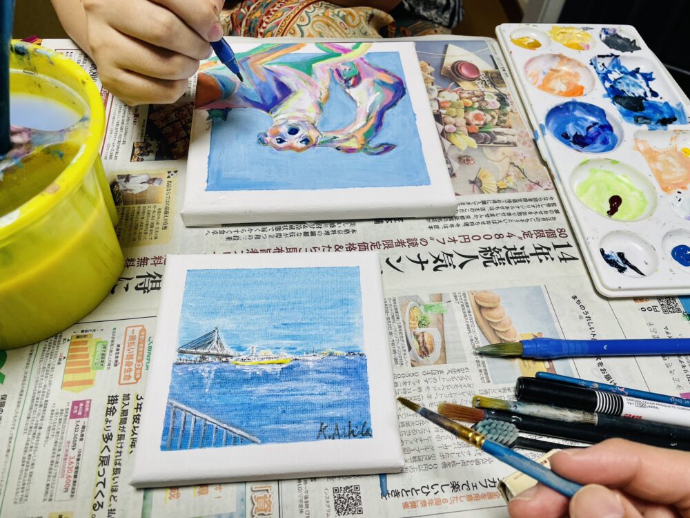 先日は作家さんと一緒にアクリル絵の具をつかったレッスンを行いました🎨