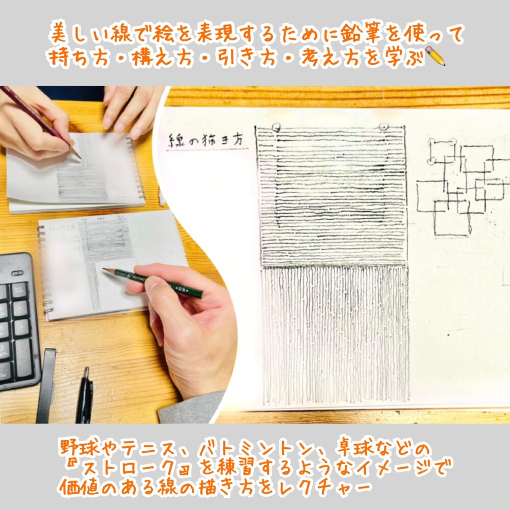 普段はレッスンの様子を公開することが多いですが、今回は少し線の描き方の内容についてチラッとご紹介🧑🎨